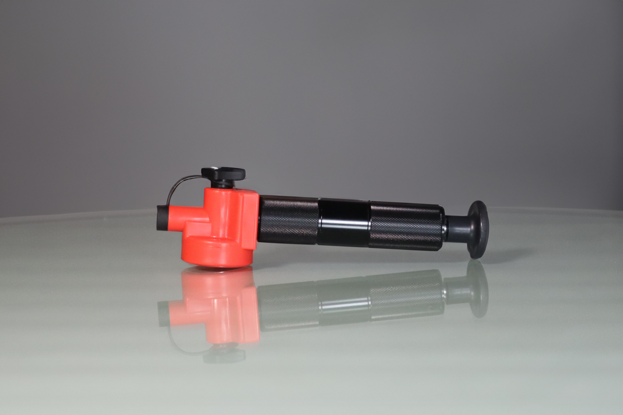 Pump with 38-400 mm threading for use with our standard sample jars. Accepts 3/16″, 1/4″, and 5/16″ tubing. Takes samples from pressurized and non-pressurized components. Adapter colored red and typically used for lubricants.
